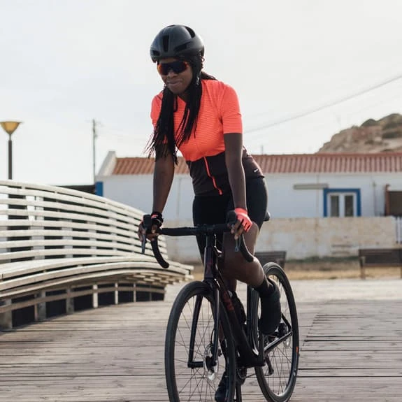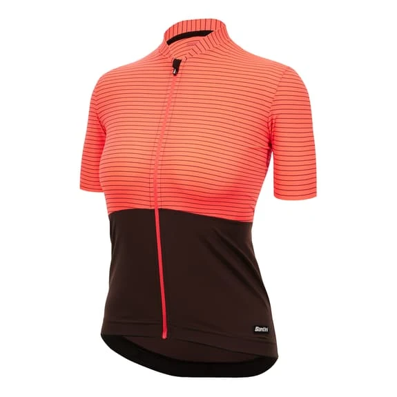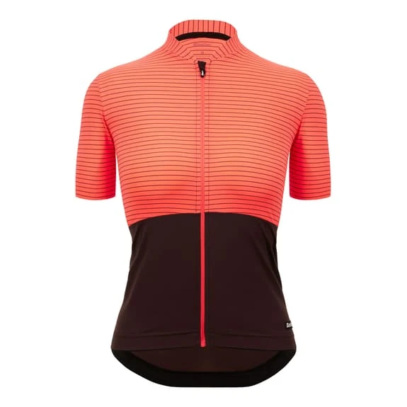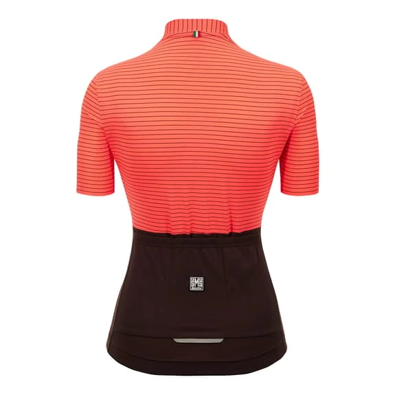 La maglia Santini Colore Riga da donna a manica corta è ideale per le cicliste che privilegiano il comfort nelle loro uscite su strada. È realizzato in un tessuto tecnico supermorbido che abbraccia il corpo senza essere restrittivo. Per mantenere una ventilazione costante è stata utilizzata una combinazione di tessuti traspiranti e ad asciugatura rapida. La parte superiore del corpo e le maniche sono realizzate in poliammide italiana a righe, leggerissima e morbida, con un taglio a vivo sui polsini. Il girovita incorpora una fascia interna in silicone per mantenere la maglia sempre in posizione durante il ciclismo.