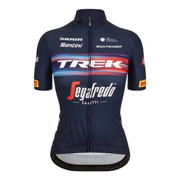 La maglia Trek-Segafredo 2022 Tour de France a manica corta da donna è stata creata esclusivamente per l’edizione del Tour de France 2022. Appositamente progettata per le donne, con un taglio adattato all’anatomia femminile per garantire una vestibilità perfetta. Confezionata in tessuto di microfibra di poliestere con maniche allungate senza orlo. Una resistente fascetta in silicone intorno all’orlo in vita assicura una vestibilità perfetta durante la pedalata.