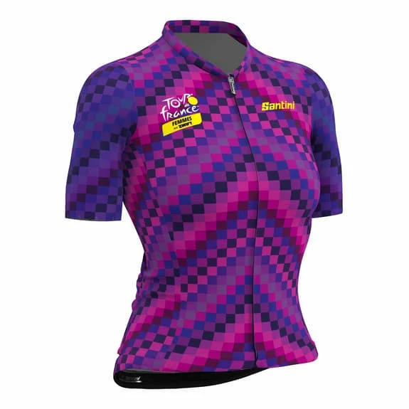 La maglia Tour de France 2023 Tappa 7 a manica corta da donna, realizzata da Santini, ha un taglio classico ed è altamente traspirante per un comfort eccellente durante le uscite in bicicletta. Questa maglia è realizzata con una combinazione di tessuti micro-mesh altamente ventilati e maniche hemless ad alte prestazioni.